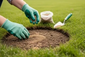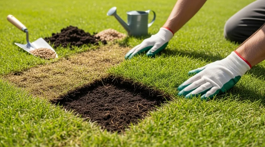 Lawn patch repair works best when soil preparation is done correctly.