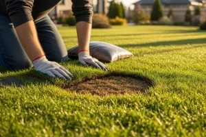 Lawn patch repair addresses these root problems, not just the surface. We loosen compacted soil and improve seed contact. In larger areas, lawn restoration services may be required to rebuild sections properly.